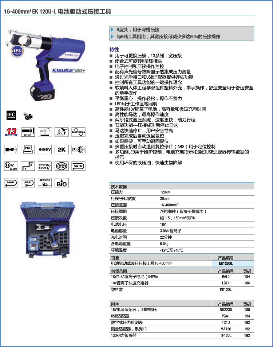 德国柯劳克KLAUKE|充电式压接机EK120U-L