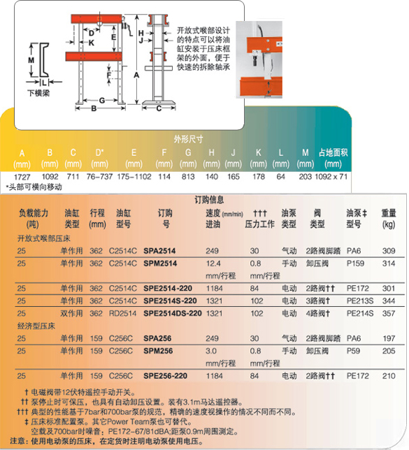 美国POWER TEAM 25吨H型压床SPA2514、SPE2514、SPE256、SPM256:
