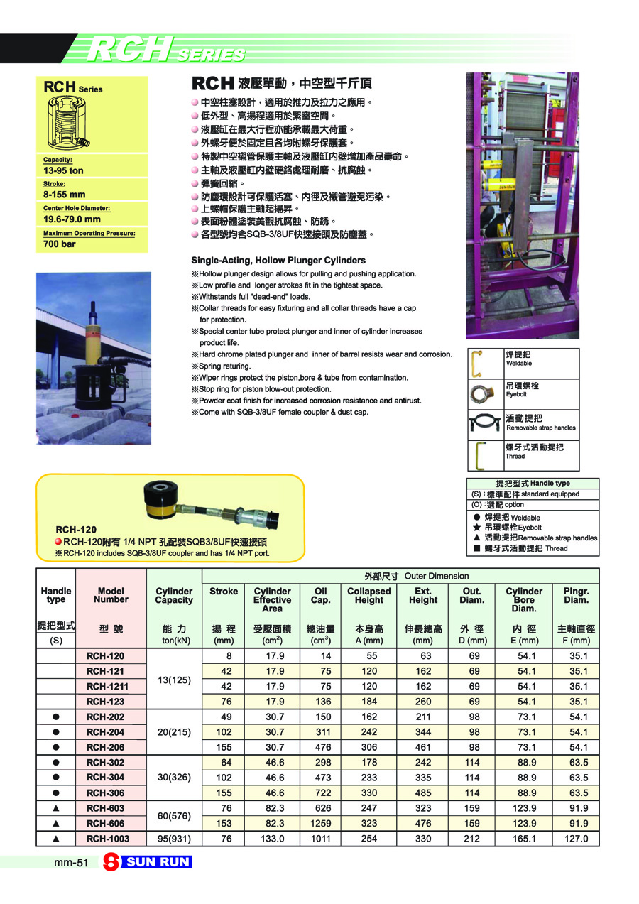 巨轮兴SUN RUN单作用中空油缸RCH系列